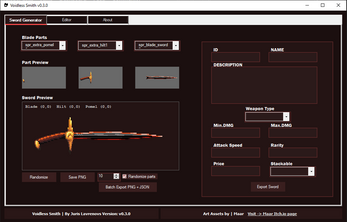 Batch export: Generate many swords at once (optionally randomizing parts) using your UI values or smart defaults.
