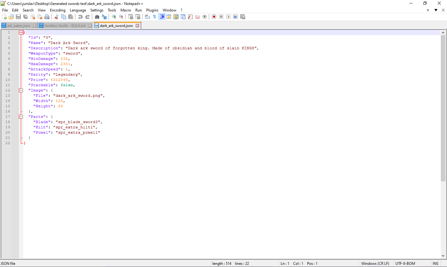 Editor for sword part editing + JSON tools